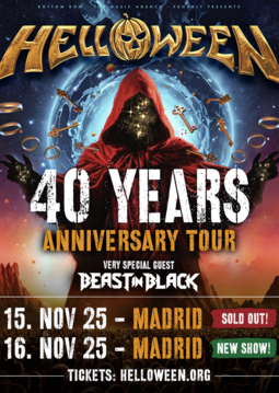 HELLOWEEN se dirige al año de su aniversario, celebrando 40 años de historia de la banda y el metal. Mientras Andi Deris, Michael Kiske, Michael Weikath, Kai Hansen, Markus Grosskopf, Sascha Gerstner y Dani Löble trabajan intensamente en el sucesor de su sensacional álbum de reunión, ahora anuncian una GIRA SUPERLATIVA DE ANIVERSARIO al mismo tiempo, como el bajista y miembro fundador Markus Grosskopf explica: "Se nos ocurrieron grandes sorpresas para los fans. Además de las nuevas canciones que se tocarán en vivo por primera vez, también tocaremos temas de la historia de la banda que no has escuchado en vivo desde hace mucho tiempo o incluso nunca antes. ¡Los shows serán una experiencia fantástica para todos nosotros!